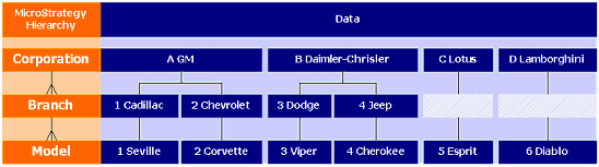 | Explanation | A ragged hierarchy is the one in which the parent or child attribute element of one or more attribute elements are not present in the level immediately above or below the attribute. In short, some attribute elements don't have a relationship with their parent/child attribute. Information in a ragged hierarchy may look like: